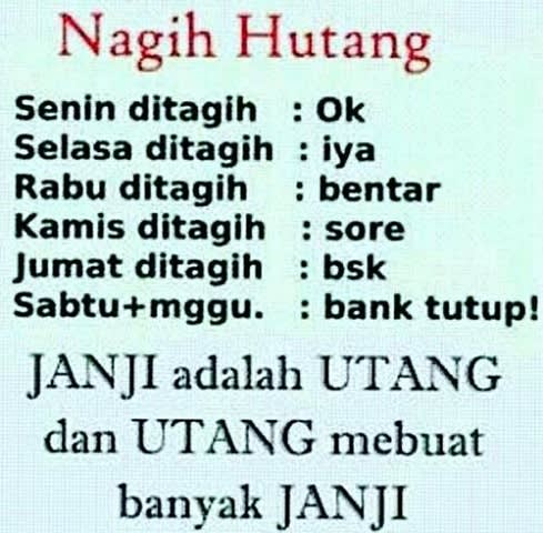 Kata Kata Hutang Wajib Dibayar - Thread By Muchamadhusyein Hanya Ada Satu Kata Stay Notes To Self Janji Bukan Janji Publik Janji Hutang Hutan Sabar Notestoself Alhamdulillah Keepfighting. 28.04.2022 · mau apa dibayar, buka saja dulu, kata lelaki itu dengan nada tinggi. Seorang kurir paket online shop dengan sistem pembayaran cash on delivery alias cod, kembali menjadi sasaran …